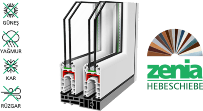 - Zenia sistemi, alüminyum alt kasa kullanımıyla Hebeschiebe sistemine dönüşebilmektedir. Böylelikle her bir kanadın yük taşıma kapasitesi 300 kg olmaktadır.